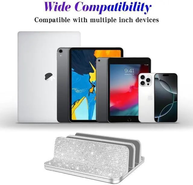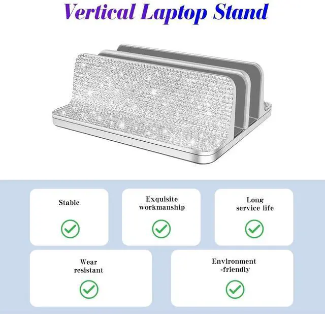 Shiny, Luxurious and Durable Desktop Decoration: The stand is anodized aluminum and scratch-resistant and rust-resistantand is inlaid with high-quality glitter rhinestones, making this stand not only suitable for your notebook, but alsodecorate your desk.