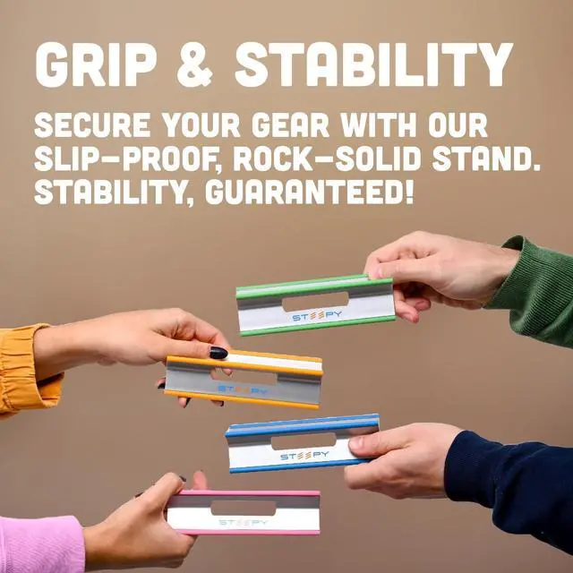 • SETUP'S A BREEZE - Just unfold and gono screws, no hassle. Instant use, instant time saver! Steepy desk laptop stand is a travel laptop stand made out of strong and durable recycled plastic, with rubber edges to provide the sturdy and stable support your device needs and prevent it from sliding or skidding.