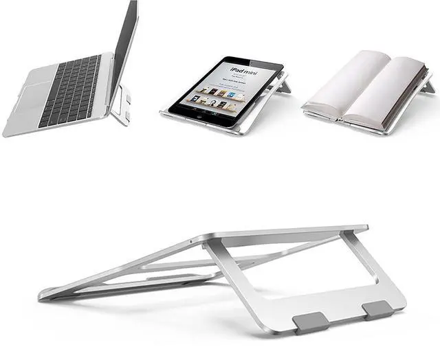Equiped with intimate features: Special designed foldable laptop stand. Ergonomic elevation angle protects the user's cervical spine and eye health. Aluminium alloy is durable, multiple silicones provide the best protection for device. Compatible for laptop, tablet, mobile phone, book, etc. The best choice for daily work and bussiness trip. Use at home, the office, the coffee shop, or