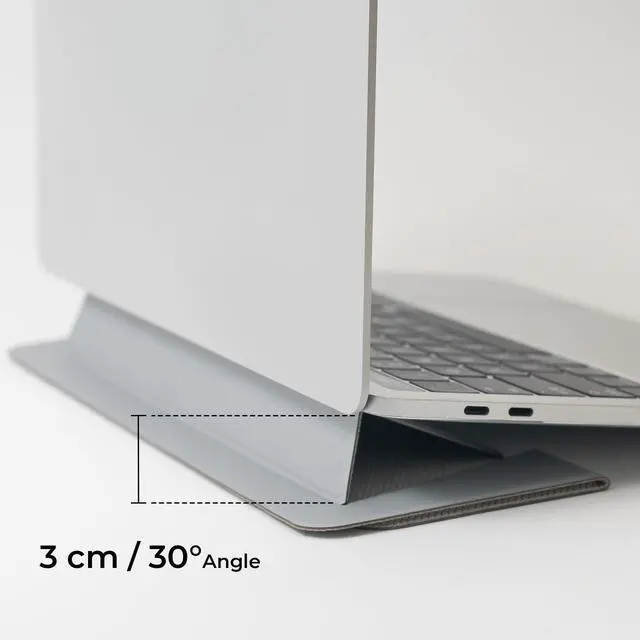 Foldable & PortableThe Ultra-Slim Laptop Stand weighs only 6 oz and is slim as a coin with 2mm thickness. The foldable laptop stand is suitable for mobile working in the office, coffee shop, on the sofa, or wherever. A portable laptop stand is available anytime and anywhere for space saving. ^^ Unique Material StandDurable PU and fiberglass material are strong and stable enough to hold up to 20 lbs. The laptop stand is compatible with a wide range of laptops or tablets up to 15.4 inches. ^^ Ergonomic DesignSenseAGE slim flat laptop stand elevates your laptop by 3 cm to improve body posture and prevent you from hunching over your screen, which reduces neck and shoulder pain.