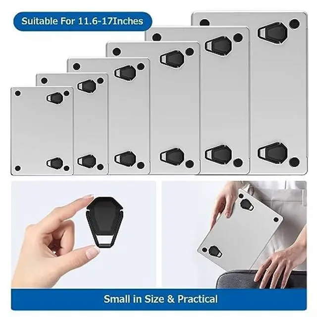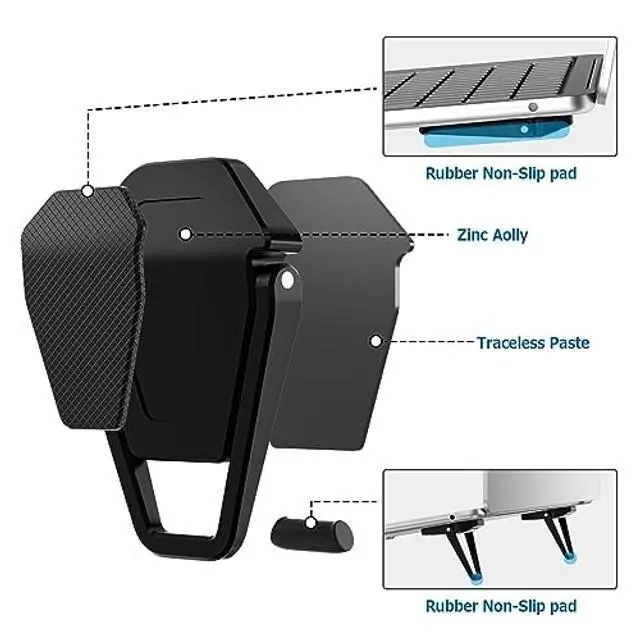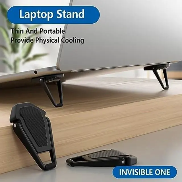 PHYSICAL HEAT DISSIPATION SIMPLE & EFFICIENTThis small laptop stand is aluminum alloy material acts as thermal pads to helps the cooling your laptop. The forward-tilt angle and open design offers great ventilation and airflow to prevent your notebook from overheating ^^ INVISIBLE MINI PORTABLE CARRY-ONA lot of thought and effort was put into the design of this glasses laptop stand, impossibly lightweight (only 2.1 oz) prides itself in being the lightest and most portable laptop stands in the market. Our laptop riser is most suitable for those who often attend out-of-office meetings, travel a lot and need a lightweight and portable stand that folds out quickly and put into your backpack or bag without much hassle ^^ ERGONOMIC & WITHOUT SACRIFICING YOUR HEALTHLaptops are extremely functional, but their screens tend to be very low.