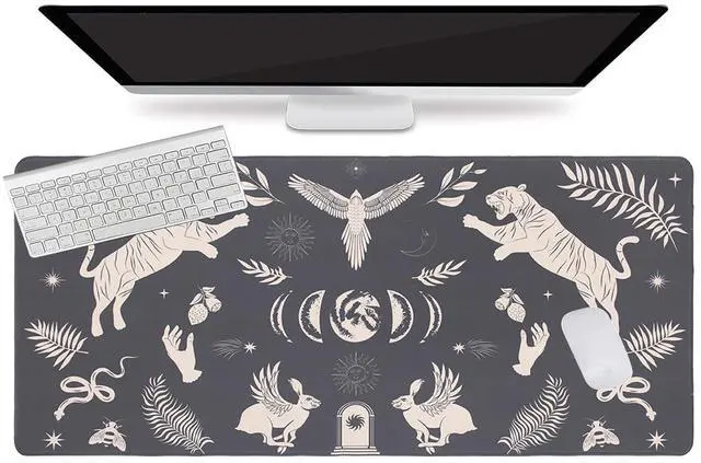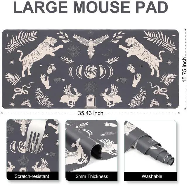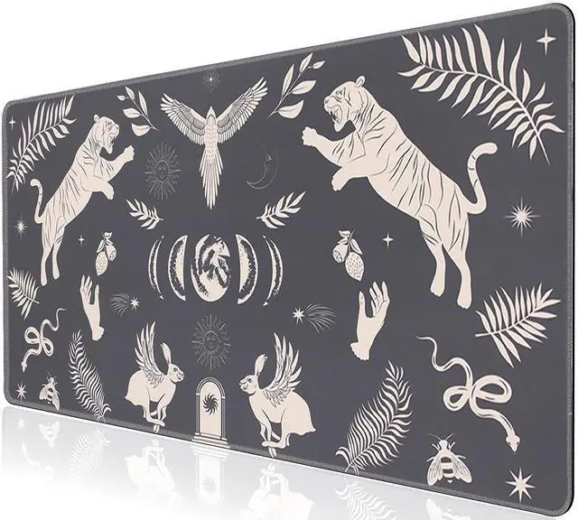 Pad Size: XXL mouse pad measures 35.4" x 15.7", black gothic astrology tiger desktop mat provides ample space for your mouse, gaming keyboard, and other desktop essentials. Its large size of desk cover mat keeps your workspace neat and organized, perfect for both gaming and office use ^^