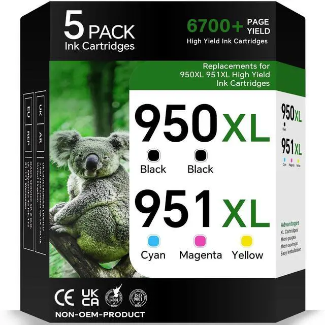 What's in the box: Kimveway compatible for hp 950 951 Ink Cartridges Combo Pack, 2* 950XL Black ink cartridge, 1* 951XL Cyan ink cartridge, 1* 951XL Magenta ink cartridge, 1* 951XL Yellow ink cartridge; Total 5 Pack ^^ 950xl and 951xl ink cartridges combo pack compatible for hp printers for HP OfficeJet Pro 8100 8600 8610 8615 8616 8620 8625 8630 8640 8660 251DW 271DW 276DW Inkjet Printer ^^