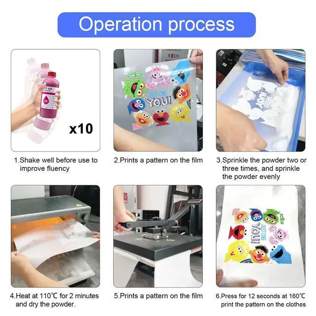 Printing effect: fine lines can be perfectly rendered, color patterns are brightly colored, large color block areas do not break the line, white ink and color ink do not penetrate each other, and the white background can perfectly cover the color patterns ^^