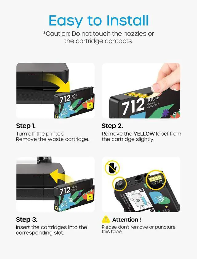 Advanced Chip Technology: Our 712 ink cartridges feature the latest chip technology, ensuring flawless compatibility with your printer. Enjoy hassle-free printing with accurate ink level tracking for uninterrupted performance ^^