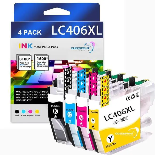 Compatibility: For brother lc406XL lc406 ink cartridges Replacement for Brother LC406XL LC406 XL Ink Cartridges and lc406 ink cartridges for brother printer MFC-J4335DW MFC-J4335DW MFC-J4345DW MFC-J4345DW MFC-J4535DW MFC-J4535DW MFC-J5855DW MFC-J6555DW MFC-J6955DW MFC-J5955DW Printer.