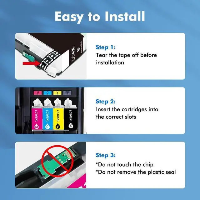 ^^ [lc406xl]High-Yield: UP to 3, 500 pages per LC406XL LC 406XL Black Ink Cartridge (LC406BK) and 1, 800 Pages for LC406XL LC 406 XL Color Ink Cartridge (LC406C, LC406M, LC406Y) (Letter/A4, at 5% coverage). ^^ [for brother ink cartridges lc406]Chips: Compatible LC406 XL Ink Cartridges equipped with the Latest Upgraded Chips for Brother LC406 ink Cartridges replacement LC406XLBK LC406XLC LC406XLM LC406XLY to ensure printer compatibility. ^^ [for brother lc406xl]Package