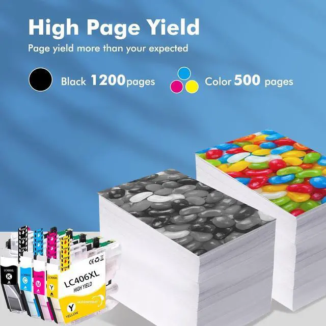 Brother Printer: 1 x Black LC406 Ink Cartridge, 1 x Cyan LC406 Ink Cartridge, 1 x Magenta LC406 Ink Cartridge, 1 x Yellow LC406 Ink Cartridge. ^^ [for brother lc406]Compatible LC406XL Ink Cartridges for Brother focusing on providing our customers high-quality printing and makes your daily printing more professional and easier