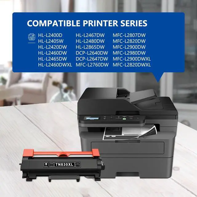 Printer Compatibility: HL-L2400D HL-L2405W HL-L2420DW HL-L2460DW HL-L2460DWXL HL-L2465DW HL-L2467DW HL-L2480DW HL-L2865DW DCP-L2640DW DCP-L2647DW MFC-L2760DW MFC-L2807DW MFC-L2820DW MFC-L2820DWXL MFC-L2900DW MFC-L2900DWXL MFC-L2980DW Printer Work for TN830 TN830XL Black Toner Cartridge ^^