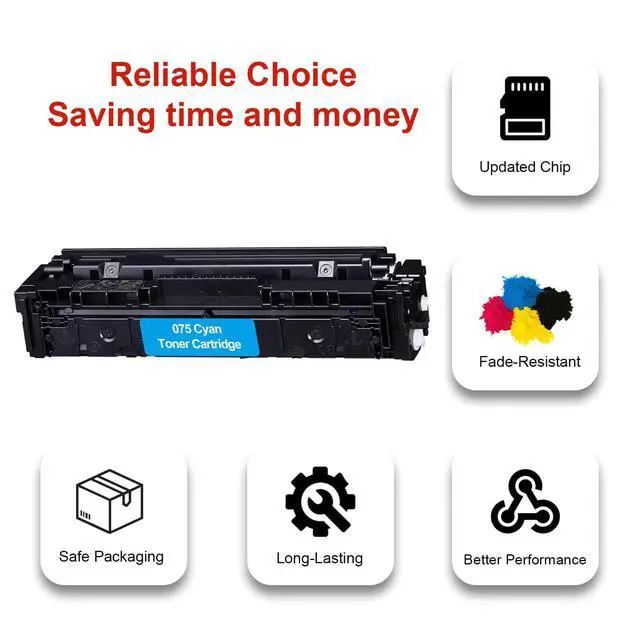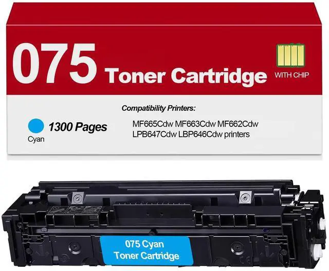PACKAGE CONTENTS 1 x 075 Cyan Toner ^^ PRINTER COMPATIBILITY for MF664Cdw MF667Cdw MF651CWC LBP646Cdw LBP647Cdw printers, Please confirm the printer model before purchase ^^ PAGE YIELD 1300 pages at 5% coverage (letter/A4) ^^ VIVID COLOR PRECISION High-quality toner ensures vibrant colors and sharp details, delivering professional print ^^ PACKAGING DESIGN The product may differ from the website images due to regular design updates, but the product itself remains unchanged