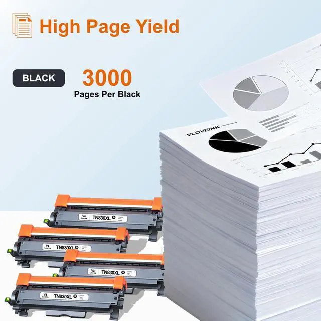 High Page Yield: Each TN830 XL toner prints up to 3, 000 pages, and the 4-pack TN830 XL toner set delivers up to 12, 000 pages in total (based on 5% coverage) ^^