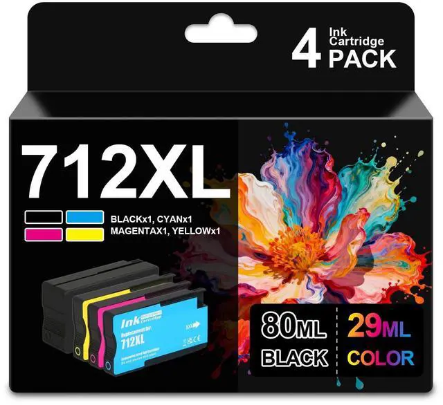 Set: This combo pack includes 1 Black (80ml), 1 Cyan (29ml), 1 Magenta (29ml), and 1 Yellow (29ml) 712XL high-yield ink cartridge. Get all essential colors in a single purchase, eliminating repeated ordering troubles and keeping your design workflow smooth ^^ High-Capacity with