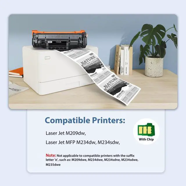 ^^ Extra High Yield: up to 1, 100 pages per 134A W1340A black toner cartridge (based on 5% coverage of letter/A4 paper). ^^ 134A Toner Cartridge compatible with HP Laser Jet M209dw, Laser Jet MFP M234dw, M234sdw printer.