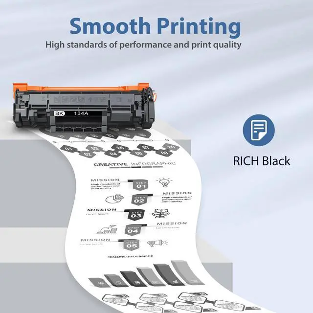 Quality Print: deliver crisp prints and produce crisp text and vivid images, ensuring consistent, high-performance output. It also ensures that the page is clean and the print quality is uniform, avoiding toner leakage ^^ Easy to install your new replacement for hp134A toner cartridge, just follow the instructions and get up and running in minutes.
