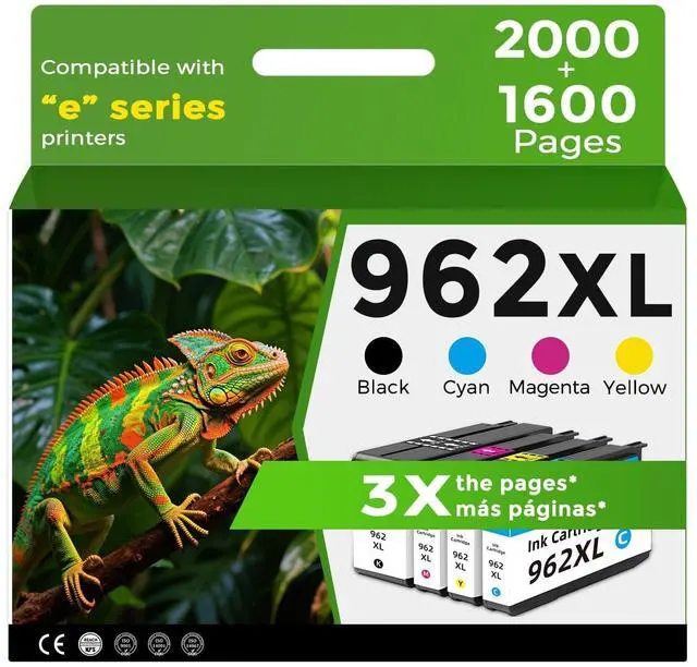 Up to 2.5-3x more prints for hp ink 962 per cartridge: 2000 pages for hp 962xl black ink cartridge, 1600 pages for hp 962xl cyan/magenta/yellow ink