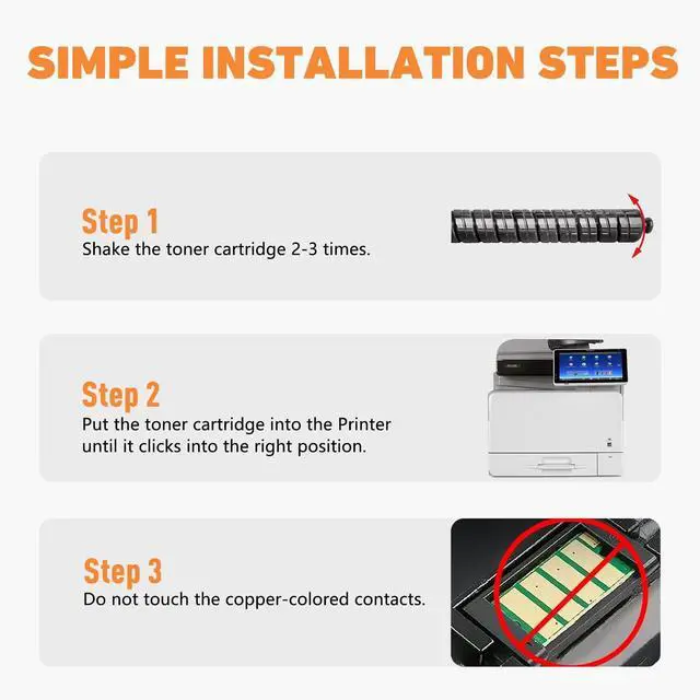 Notes: Please shake the MP C406 toner horizontally 2-3 times before use to ensure the even distribution of toner and provide you with a better, clearer, and more natural printing effect