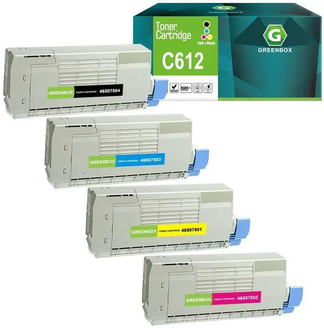^^ Contents: 4 pack compatible replacement for OKI Okidata C612 46507504 (black) 46507503 (cyan) 46507502 (magenta) 46507501 (yellow) toner cartridges.