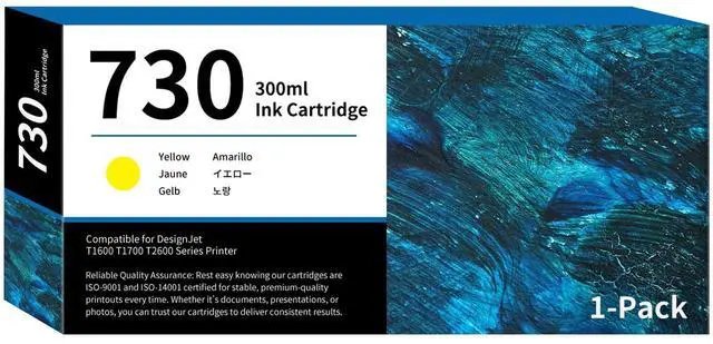 The Package Contains: 730 Ink Cartridge Yellow P2V70A 1-Pack, each with a capacity of 300 ml ^^ Compatible with HP DesignJet T1600 T1700 T2600 Printer ^^ Reliable