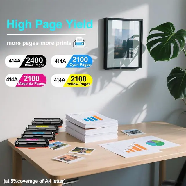 With Chip: Experience seamless compatibility with HP 414A Toner Cartridges 4 Pack High Yield. Our cartridges feature built-in chips, eliminating the need to transfer old ones ^^