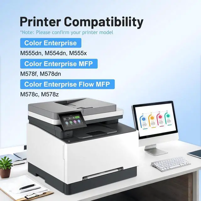 Printer Compatibility: HP 212A toner cartridges with latest chip version for fast recognition and easy to install to compatible with color laserjet Enterprise M554dn M555dn M555x, color laserjet Enterprise MFP M578f M578dn, color laserjet Flow MFP M578c M578z printer ^^