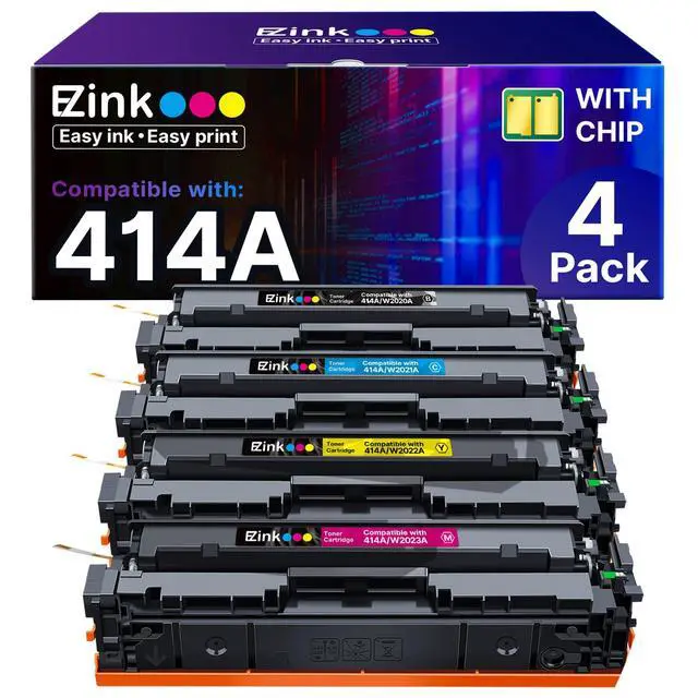 With Chip: These E-Z Ink 414A toner cartridges for hp 414a toner cartridges 4 pack are already installed with chips to provides the printing experience crucial for office productivity, No need to transfer and install original 414A or 414X toner's chip to them ^^