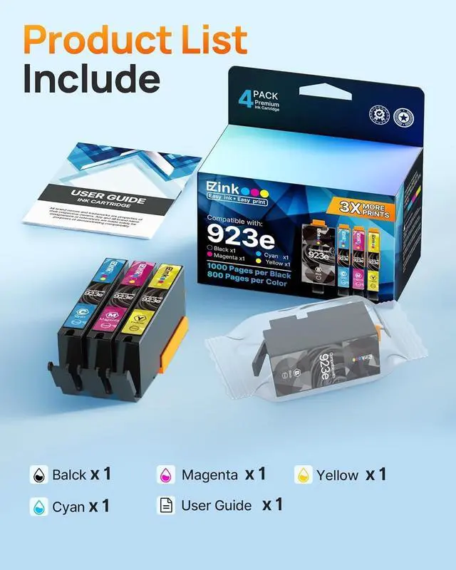 Ink Cartridges: If you encounter any issues while using 923 ink cartridge combo pack, please don't hesitate to contact us. We offer a 24-month product guarantee and technical support for E-Z Ink 923 ink cartridges for hp printers.