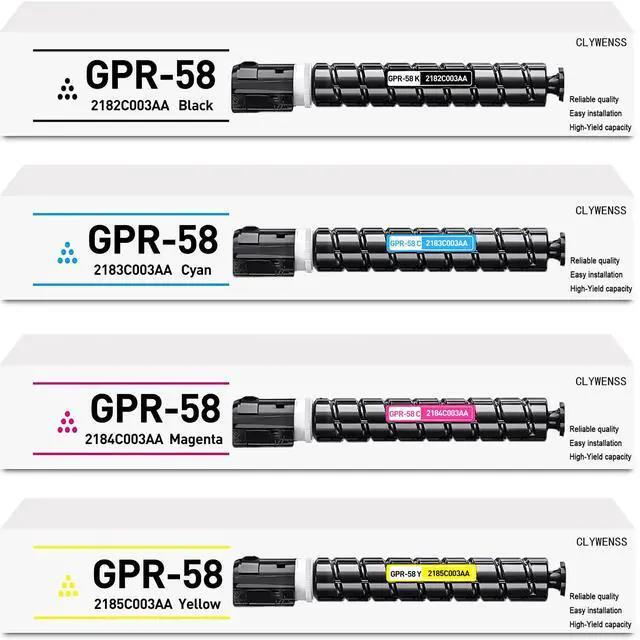 Package Content: 4 Packs of canon gpr-58 gpr58 high-yield, gpr-58 black 2182c003aa, gpr-58 cyan 2183c003aa, gpr-58 magenta 2184c003aa, gpr-58 yellow 2185c003aa toner cartridges ^^ High