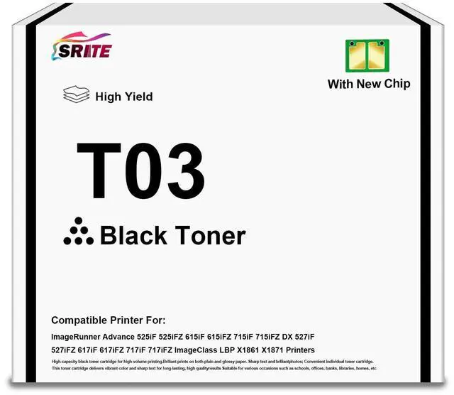 High Page Yield: Up to 52, 000 pages in black at 5% coverage on letter a4, meeting the demands of high-volume printing tasks ^^ Our SRITE T03 toner cartridge adopts a brand-new chip, has good compatibility with printers, a long service life, smooth printing, and is not prone to clogging, paper jams, or toner leakage. The printed effect is vivid in color and clear in handwriting ^^