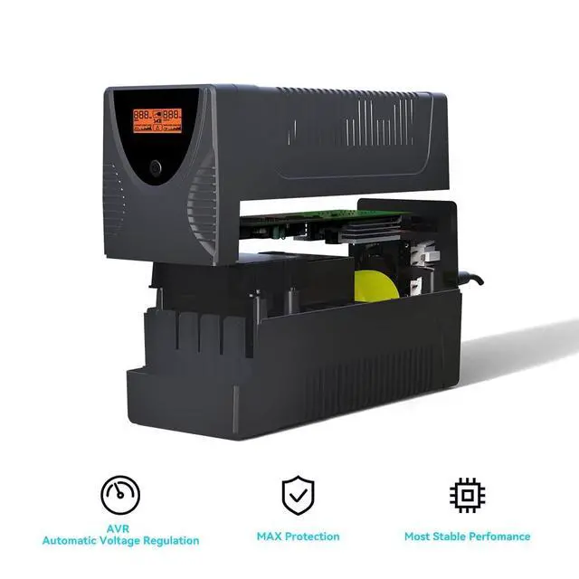 ^^ Intelligent LCD: Come with an intelligent LCD screen that shows battery status and UPS operation information. Additionally, the LCD display and noise can be turned off, allowing users to customize their preferences and enjoy a quiet working environment.