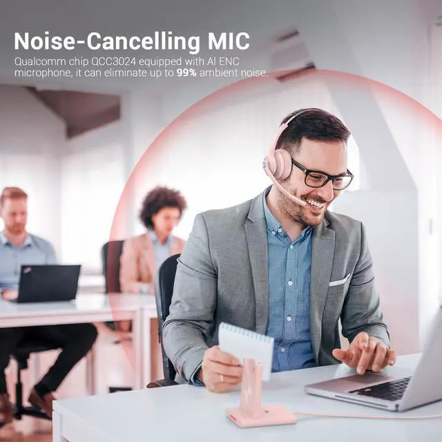 [Advanced Microphone for Clear Calls]; This wireless headset with mic for work features a high-sensitivity microphone that delivers exceptional voice clarity for business communications. The optimized microphone placement captures your voice naturally, ensuring your speech comes through loud and clear on every call. As an advanced headset with a microphone, it includes a mute function for instant call privacy control.