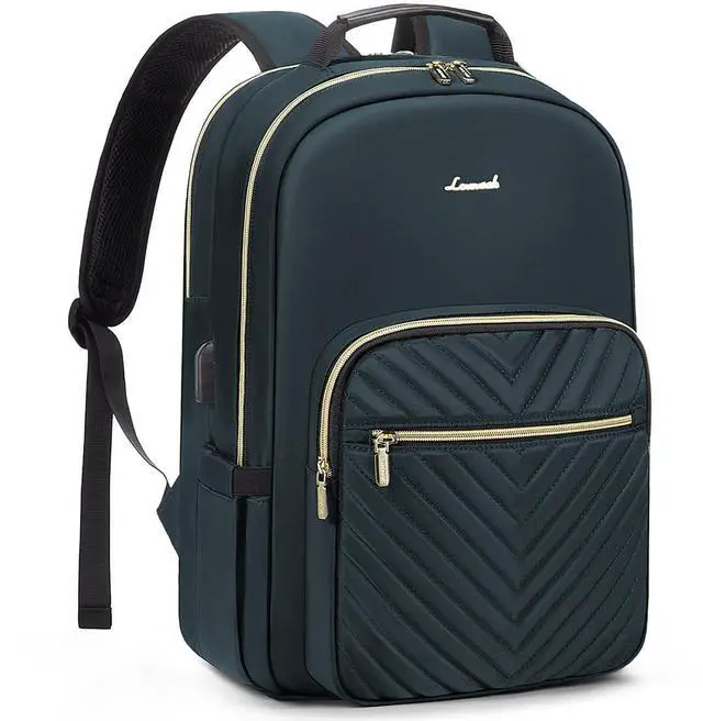 Upgraded Laptop Backpack Women: Classic V-shaped embroidery thread. Upgraded double LOVEVOOK no-slip metal zippers, water resistant Nylon fabric with polyester lining, ensures long lasting usage. Total of 4 compartments and 16 pockets for your computer, A4 folder, bottles, umbrellas, clothes, work supplies, college supplies and travel essentials.