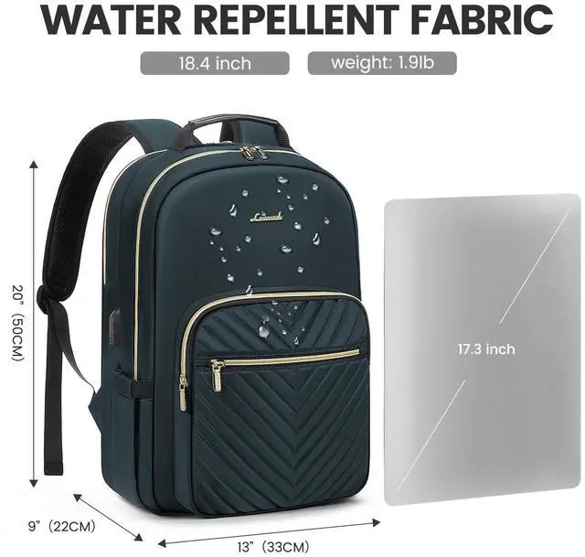 LOVEVOOK Laptop Backpack for Women 18.4 inch,Cute Womens Travel Backpack Purse,Professional Laptop Computer Bag,Waterproof Work Business College Teacher Bags Carry on Backpack with USB Port,Blue-green