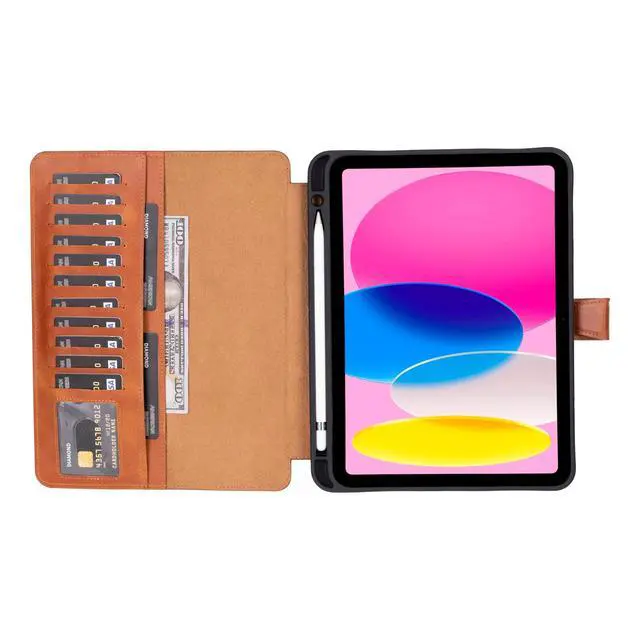 Compatibility ^^ Specifically designed for iPad Generation (10th Generation 10.9 -inch (2022) Provides easy access to all buttons, controls, and ports. Ensure to verify your iPad model before purchasing. ^^ Handmade Full-Grain Leather ^^ Crafted from premium full-grain leather, this handmade case offers a refined finish and outstanding durability. Over time, the leather develops a unique patina, ensuring lasting elegance ^^ All-Around Protection ^^ Shields your iPad from drops, scratches, dirt, and damage with a shock-absorbing interior and durable leather exterior. The soft microfiber lining keeps your screen pristine, while the sturdy exterior protects against daily wear ^^ Built-In Stand & Apple Pencil Compatibility ^^ Features a built-in stand for hands-free video viewing.