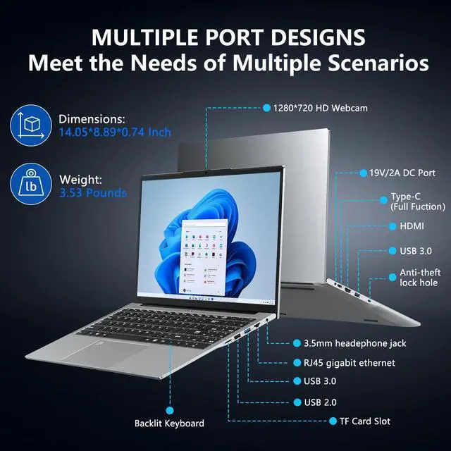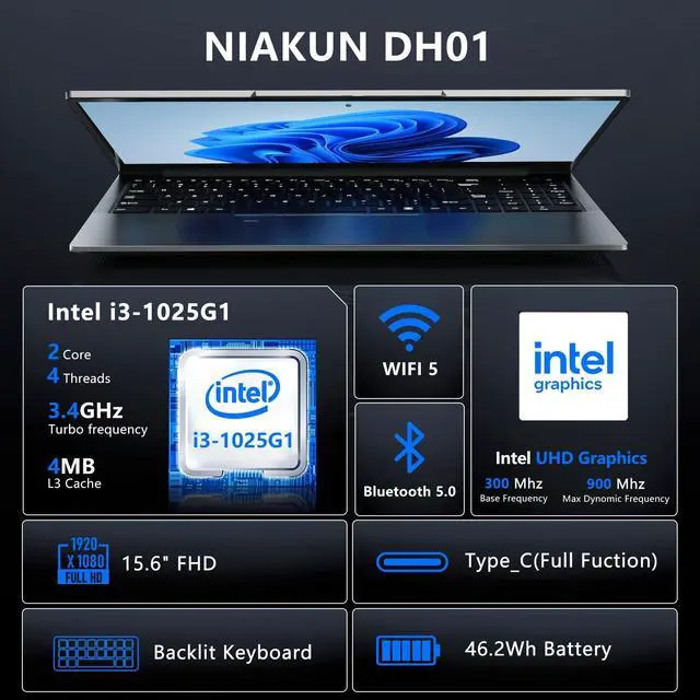 Even at maximum brightness, the battery lasts up to 6 hours, giving you enough time to stay productive on the go. ^^ Comprehensive Connectivity Stay connected with the latest WiFi 5 and Bluetooth 5.0 technologies for faster and more stable wireless connections. The laptop also includes versatile ports: USB 3.0, HDMI, a full-function Type-C port, and a TF card slot supporting up to 128GB. ^^ Enhanced Security and Convenience Secure your device with the built-in fingerprint reader for fast, password-free access. The backlit keyboard is designed for comfort and efficiency, allowing you to work in any lighting condition. ^^ Complete with Window 11 Pro & OfficeExperience a streamlined and secure computing environment with the latest Window 11 Pro, enhanced by pre-installed Office productivity suites. Work smarter with integrated tools that boost efficiency, protect your data, and manage tasks effortlesslyall in one ready-to-use package. ^^ Privacy and Productivity Features The laptop includes a 1MP front-facing camera with a physical privacy shutter for added security during video calls. Whether you're working from home or on the move, these thoughtful features ensure your privacy is always protected. ^^ Peace of Mind WarrantyEnjoy worry-free usage with a 2-year warranty and round-the-clock customer service. We're dedicated to providing continuous support, ensuring your experience with NIAKUN is smooth and reliable.