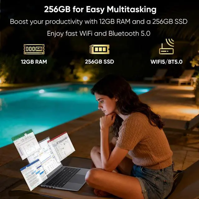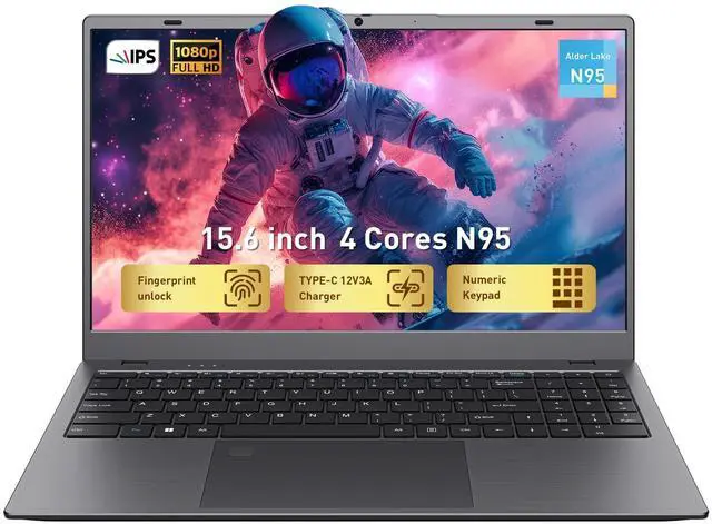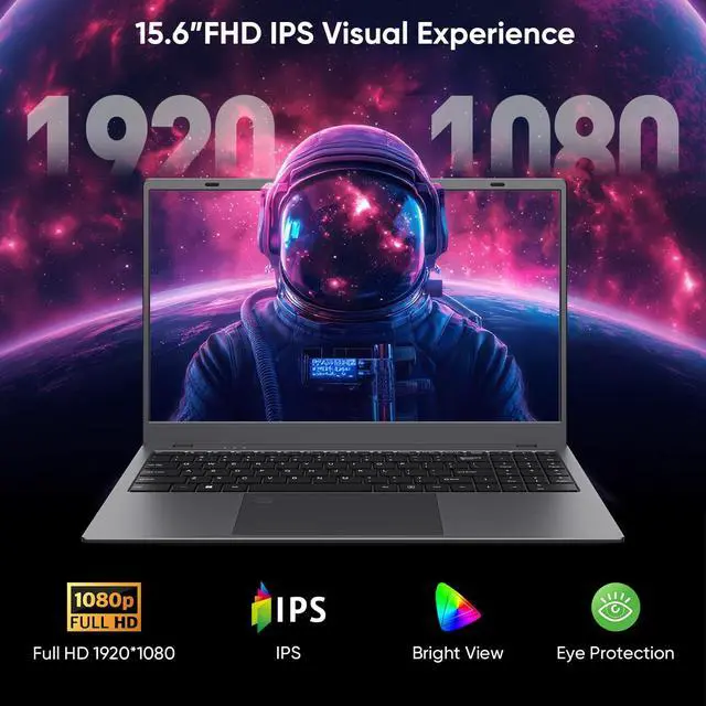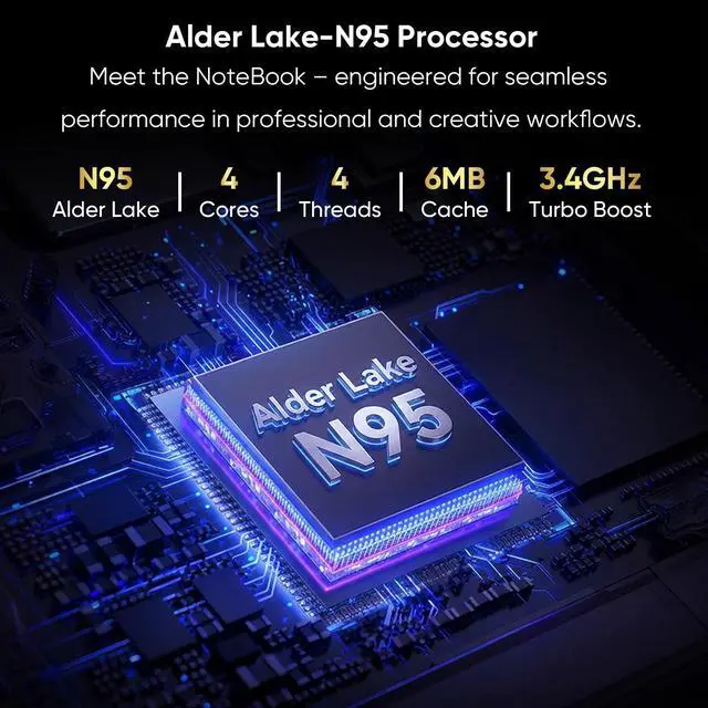 Elevate Your Productivity with Advanced N95 Processor Meet the NoteBook engineered for seamless performance in professional and creative workflows. Featuring the N95 Quad-Core processor and energy-efficient 10nm technology, achieve responsive speeds of up to 3.4GH z for everything from multimedia editing for small business to data analysis for online courses. Effortlessly power up to three external 4K displays for an expanded workspace that boosts multitasking efficiency. This 4-core N95 laptop is perfect for business professionals and students needing reliable performance for remote work from home and hybrid online classes. ^^ Immersive Visuals, Expanded Memory Dive into stunning clarity with a 15.6" FHD IPS display offering wider viewing angles, true-to-life colors, and reduced eye strain for long-hour online study sessions.
