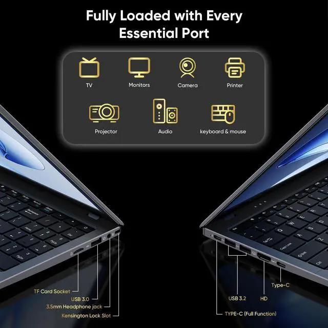 Complete with 3.2 USB ports, HDMI, and pre-installed W11 Pro, this laptop is your all-in-one connectivity solution. This notebook with dual Type-C is a game-changer for remote workers on business trips who need flexible charging and seamless device connectivity on the go. ^^ Designed for Mobile Professionals Weighing only 3.53 pounds with a slim profile, this laptop moves with you effortlessly. The full-size keyboard with numeric pad and spacious 6.5" touchpad provide exceptional comfort for accounting data entry and school assignment typing. Advanced thermal management maintains optimal performance during extended use.