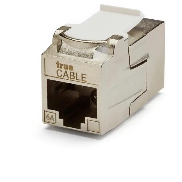 Supports Power over Ethernet: PoE/PoE+/PoE++ (IEEE 802.3 af/at/bt) 4PPoE up to 100W. Impedance matching technology. ^^ EASY TO USE. Our 180 RJ45 to RJ45 feed through keystone jack couplers are designed for quick and painless installations. The reusable keystone jack design makes it easy to disconnect and relocate as needed. ^^ VERSATILE. 100% compatible with any standard wall plate or patch panel. Ultra durable nickel plated zinc housing offers outstanding shielding and an effective method for reducing alien crosstalk from neighboring connectors. Works with shielded and unshielded Ethernet cable. ^^ QUALITY GUARANTEED. ANSI/TIA 568 2. D Cat6A Permanent Link & Channel Certified up to 10 Gigabit by trueCABLE. UL Listed, ETL Verified, TAA compliant, and RoHS-2 compliant. Tested in the real world by real installers. Backed by our FOREVER WARRANTY. ^^ 12 PIECE BOX. These durable and time saving female to female keystone RJ45 couplers are sure to make your install hassle-free. No tools required.