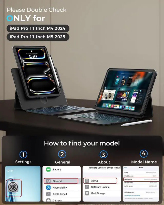 Pro 11-inch (M4) 2024 (models: A2836, A2837, A3006), ensuring flawless compatibility. Verify your iPads model number (beginning with "A") on the back cover prior to purchase.