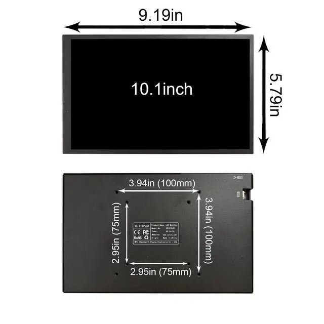 kg/ 1.80 lbPacking list: 1 10.1 inch 1280x800 VS101SJ01-B LCD Monitor Black Case1 9 Pin Signal Cable1 USB Cable1 USB Memory Card With Software1 User Manual Included Software