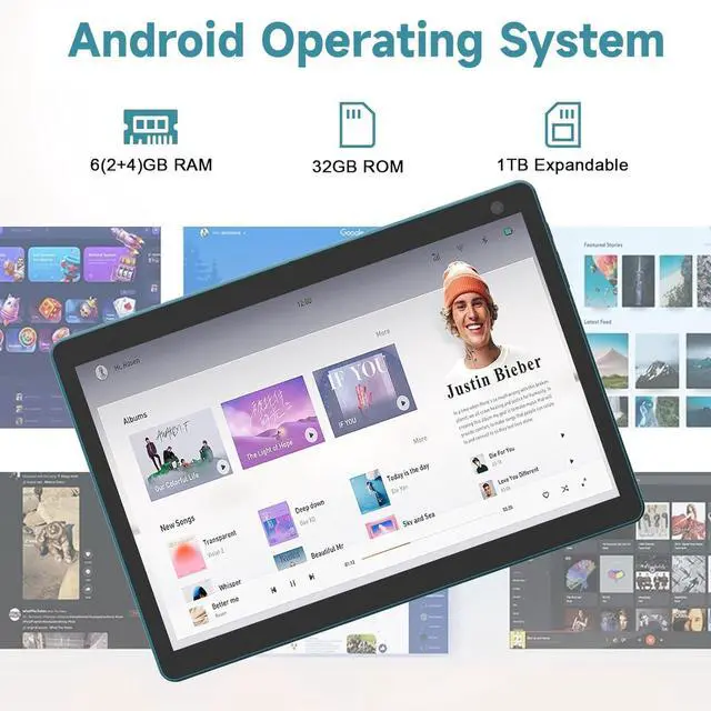 Android Tablet Tablet featuring Android operating system, stable and faster. Powerful quad-core processor which is more energy-saving. More quicker and faster when open apps. Smooth when surfing ineternet. Google GMS certified tablet so that you can get apps such as TikTok, Yahoo, Twitter from the Google Play. ^^ 6GB+32GB and 1TB Expand This 6GB (2GB fixed memory+ 4GB virtual memory) RAM 32GB ROM tablet support most 1TB MicroSD card (card not included), can storage your movies, musics, photos, anything you want. Bluetooth and type-C cable so that you can transfer your data from computer etc.