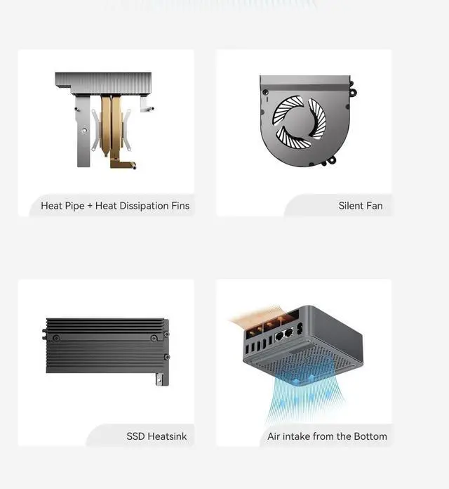2) If you only use the wired network to connect the micro pc, please disconnect the wired network directly, restart the machine, and connect to the network after successfully entering the operating system. 3) If you have connected to WIFI when it cannot load on OS, please turn off the router you are using. CautionsIn order to continue improving the user experience, we may occasionally update the application and firmware. Do not use chemical solvents or aggressive cleaning products. Do not throw the product into fire to avoid accidents. Be aware of leaks when cleaning electronic components, be careful of electric shock.