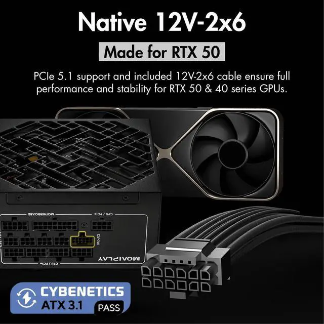 Equipped with a PCIe 5.1 12V-2x6 native cable; delivers up to 600 W of direct power through a single connector; supports NVIDIA GeForce RTX 40 and 50 Series graphics cards without requiring adapters ^^ Cybenetics Gold Certified Efficiency & LAMBDA A+ Silent Performance. Certified for exceptional power conversion efficiency with Cybenetics Gold ratingminimizing heat, lowering power usage, and reducing fan noise under load. Also awarded the LAMBDA A+ acoustic certification for ultra-quiet operation, ensuring a near-silent gaming or work environment even during high-demand scenarios. ^^ Fully Modular Design All cables are detachable, so you only use what you needmaking your build cleaner, easier, and better for airflow.