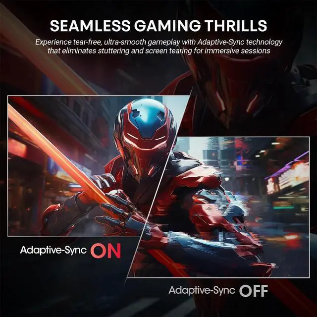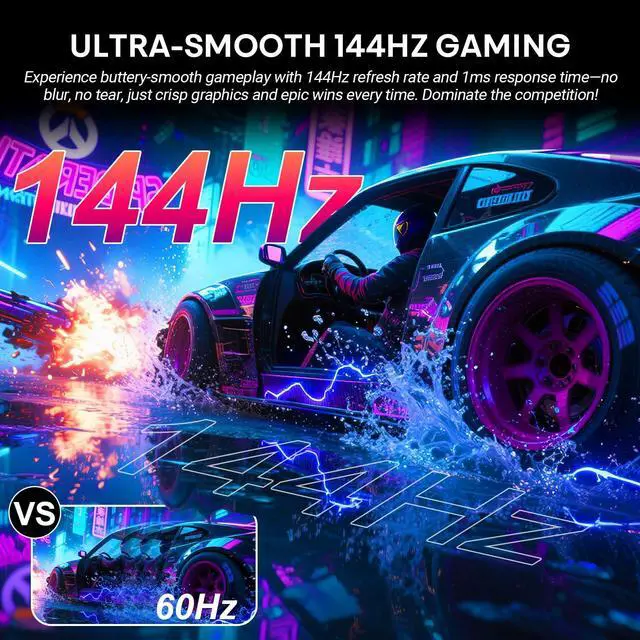 Resulting in a superior visual experience for gamers and creators ^^ Tear-Free, Ultra-Smooth Gaming, Experience smooth gameplay with FreeSync, eliminating screen tearing, stuttering, and lag. Paired with a blazing-fast 144Hz refresh rate, this 24-inch gaming monitor keeps your GPU and display in perfect sync even during fast-paced action. Say goodbye to choppy frames and hello to immersive, fluid visuals that give you the competitive edge ^^ Eye Protection, With flicker-free technology, the 24in monitor with low blue light have a stable and constant backlight, resulting in a smoother viewing experience.