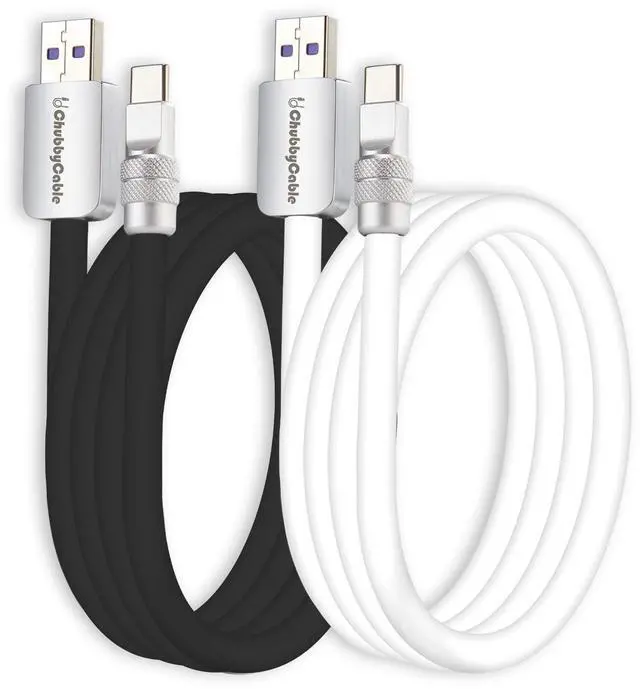 chubbycable Couple Chubby 2 Pack 120W USB C Cable Extra Thick Silicone Fast Charging Cable Compatible with iPhone 17-15 Series iPad Galaxy Series, Black+White, USB-A to Type-C, 13.1FT