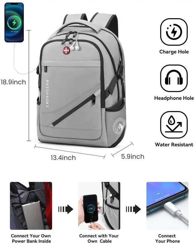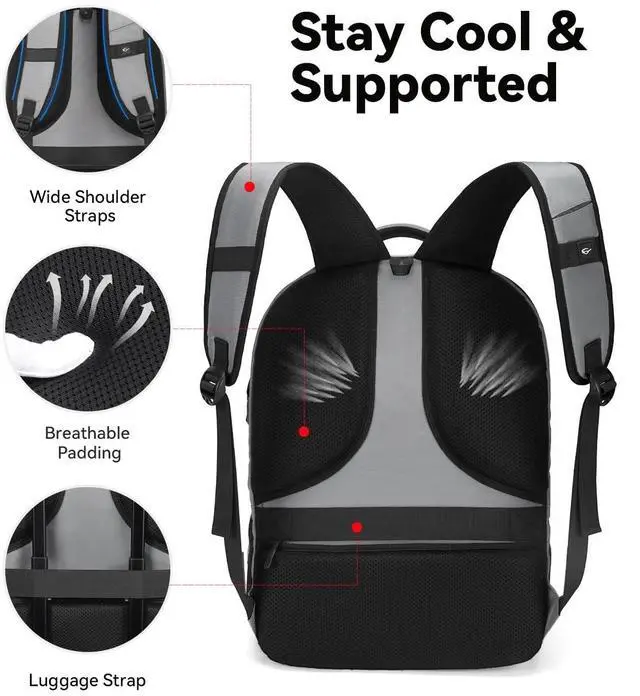 Luggage Strap & Combination Lock: Large travel backpacks featuring the luggage belt on the back, business traveller could fit carry on backpack right on the luggage suitcase for easier carrying which frees your hands. The laptop compartment is designed with a combination lock to effectively protect valuables from loss, initial password 000. A hidden anti theft pocket on the back protect your wallet, passport and valuable items from thieves. Work travel bag is a must-have for business traveling. ^^ Large Capacity with Multiple