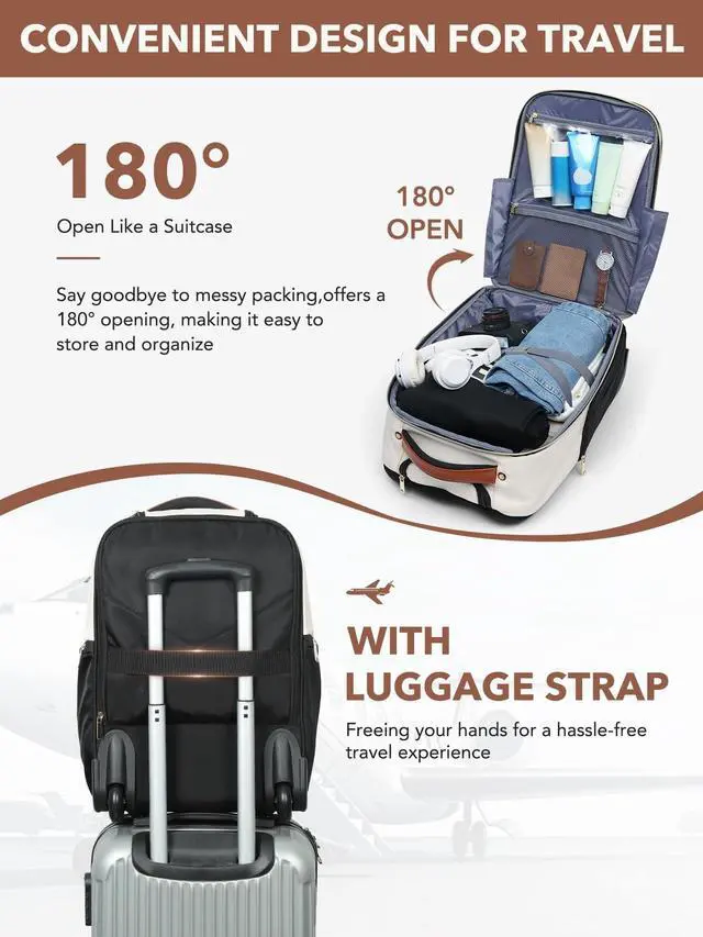 TSA Friendly: Wheeled backpack come with 180 large opening design, this meets TSA standards and can be quickly screened and allows you to quickly view and organize your items. Let you have a pleasant and relaxing trip ^^