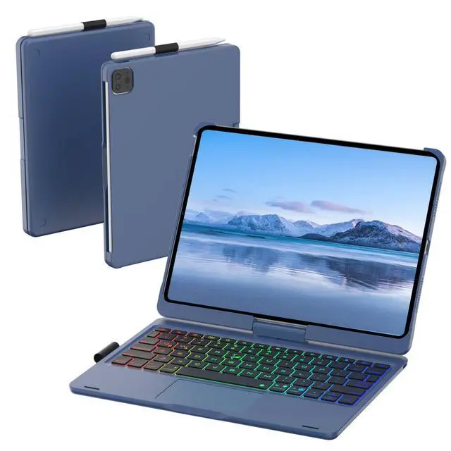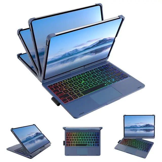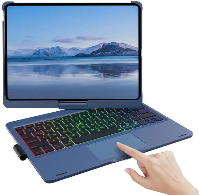 Mollenmell TouchPad Keyboard Case for iPad 10th Generation&iPad 11th(A16,2025),iPad Air 11M3,M2/iPad Pro 11 inch Keyboard360Swivel,7 Use Modes,Rainbow Backlight (Lake Blue)