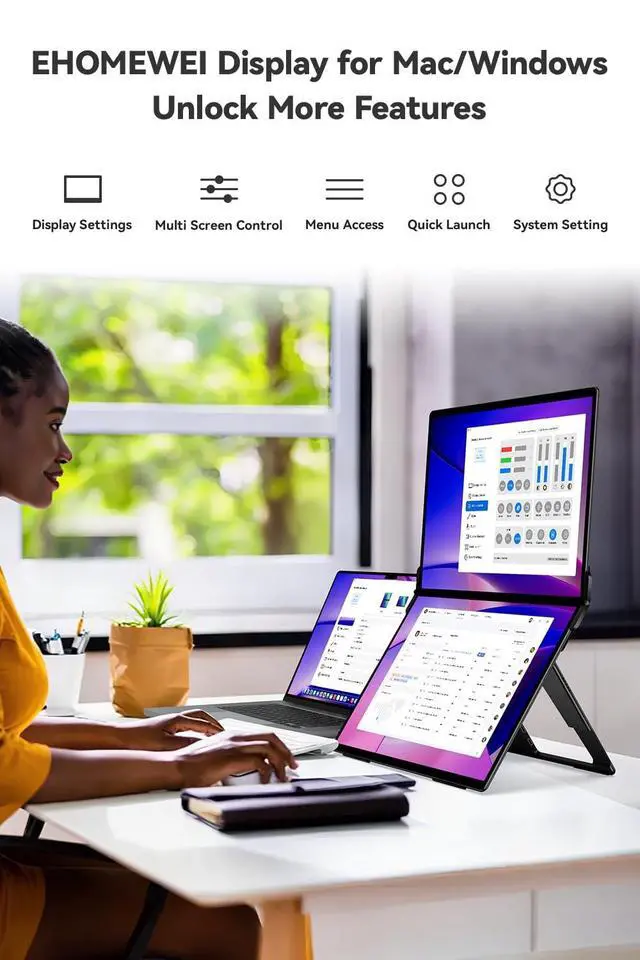 Ehomewei Self-Developed Software: With the EHOMEWEI DISPLAY software, you can easily manage color, brightness, resolution, touch, and stylus settingsjust by tapping the screen or moving your mouse on Windows or macOS.