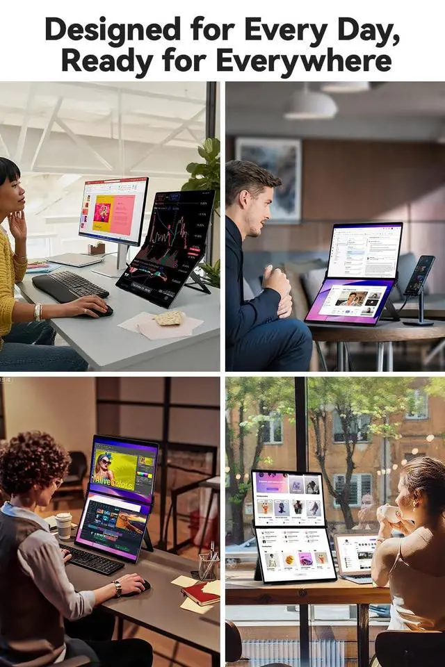 ^^ Ultra-Slim & Portable: This dual-screen monitor features an ultra-thin 4mm design and weighs just 3lb. It comes with a carrying case, making it the perfect choice for travel and on-the-go use.