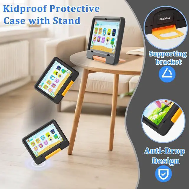 ^^ Durability and Safety: This 10inch Android 15.0 kids tablet includes a "Kidproof Protective Case with Stand", featuring an anti-drop design with reinforced corners to withstand accidental falls. The case also has a built-in supporting bracket for tabletop or floor use, protecting the tablet in active home environments. ^^